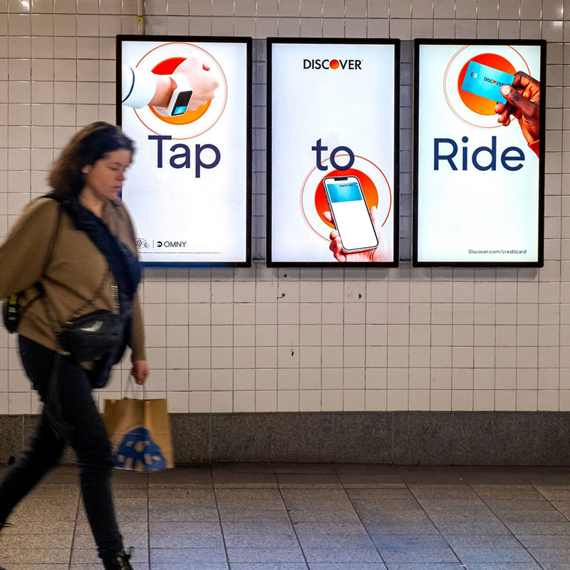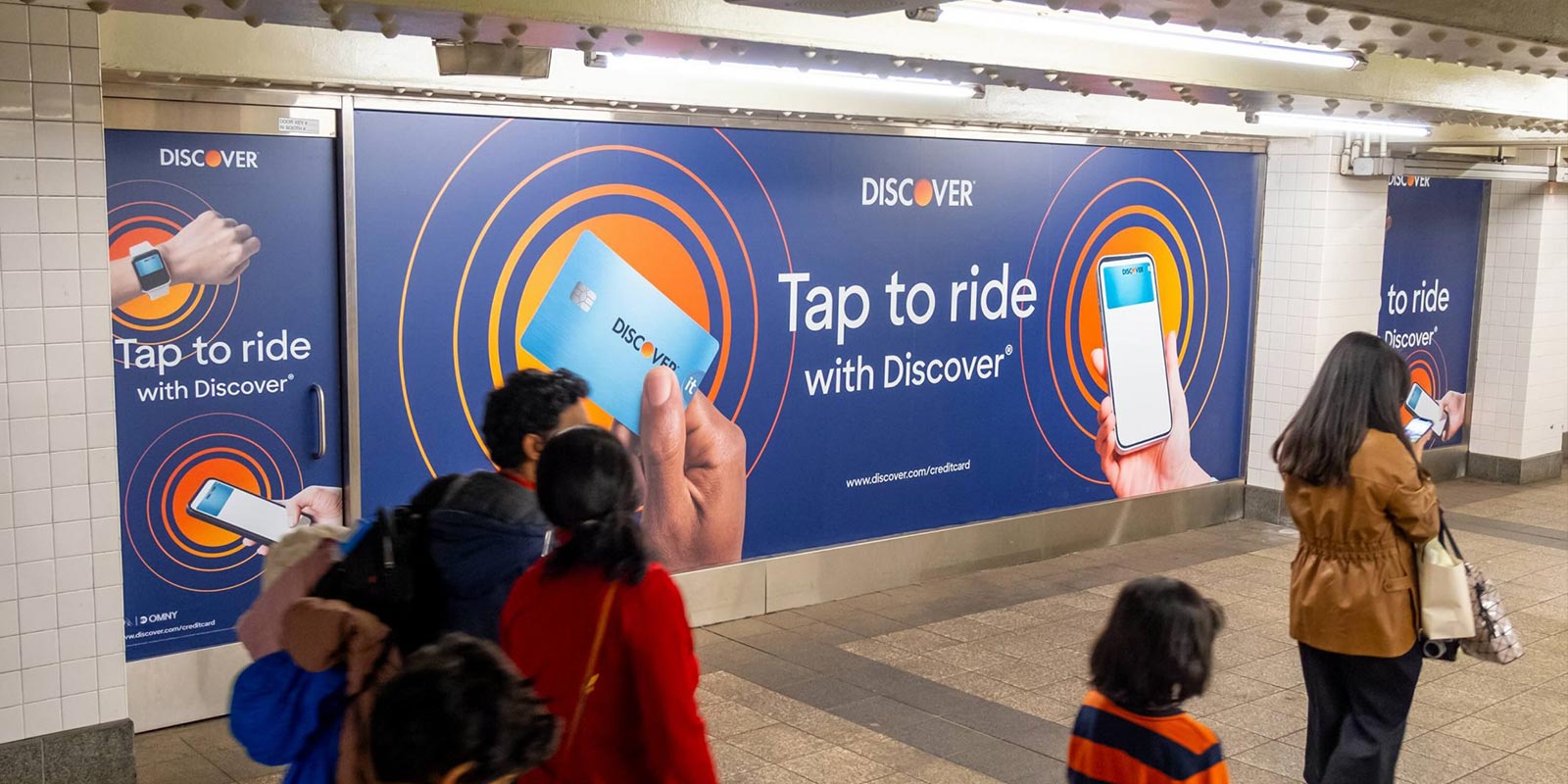 The internal agency at Discover Financial Services was tasked with one simple ask: make a campaign that shows how easy it is to pay on the Discover Global Network. The answer was simple. Highlight all the different ways someone can pay. Whether it be via a card, phone, or wearable, it’s all accepted. All photos provided by Outfront Media Inc.